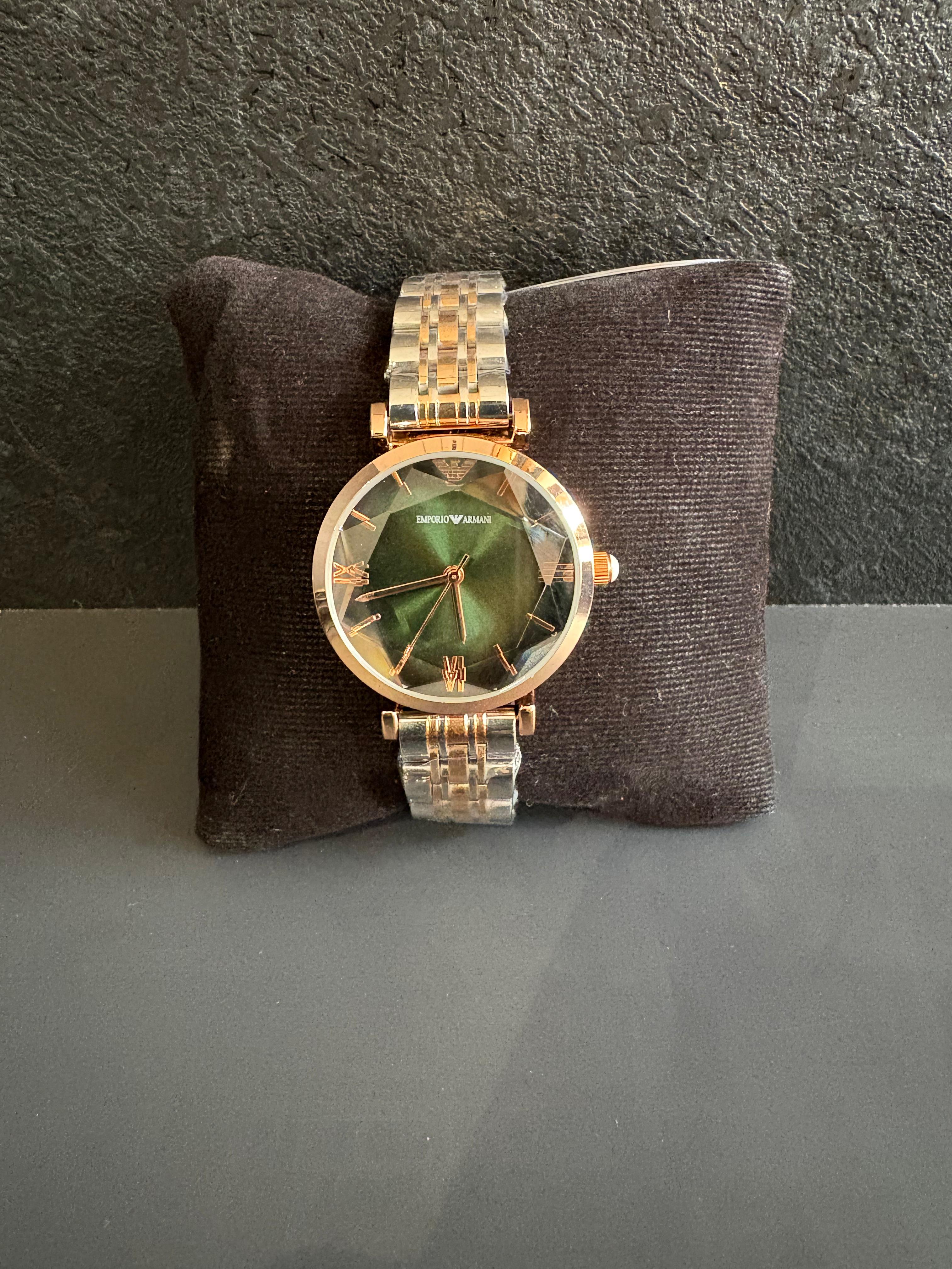 Emporio Armani Diamond Green Dial Silver Chain Watch