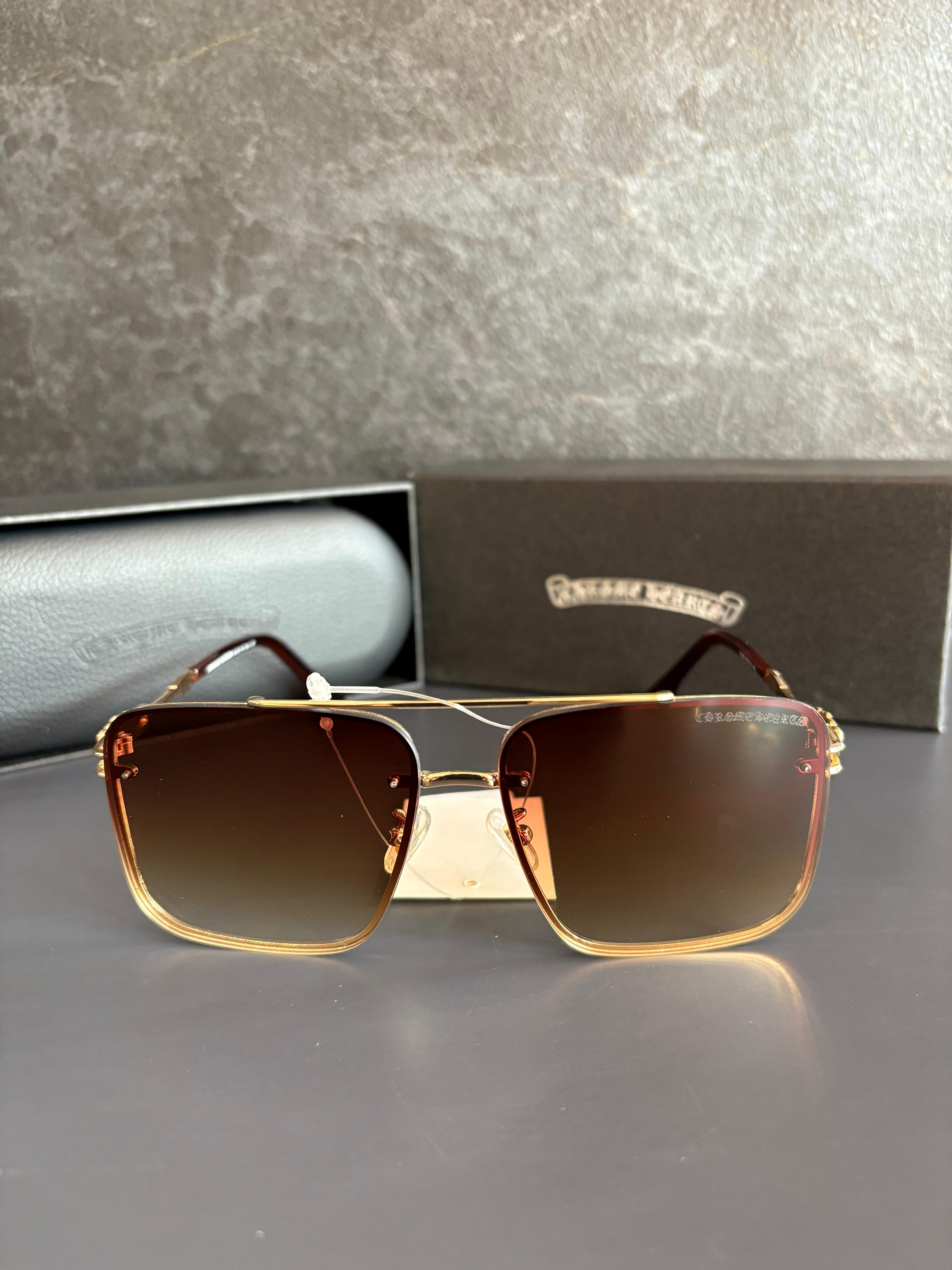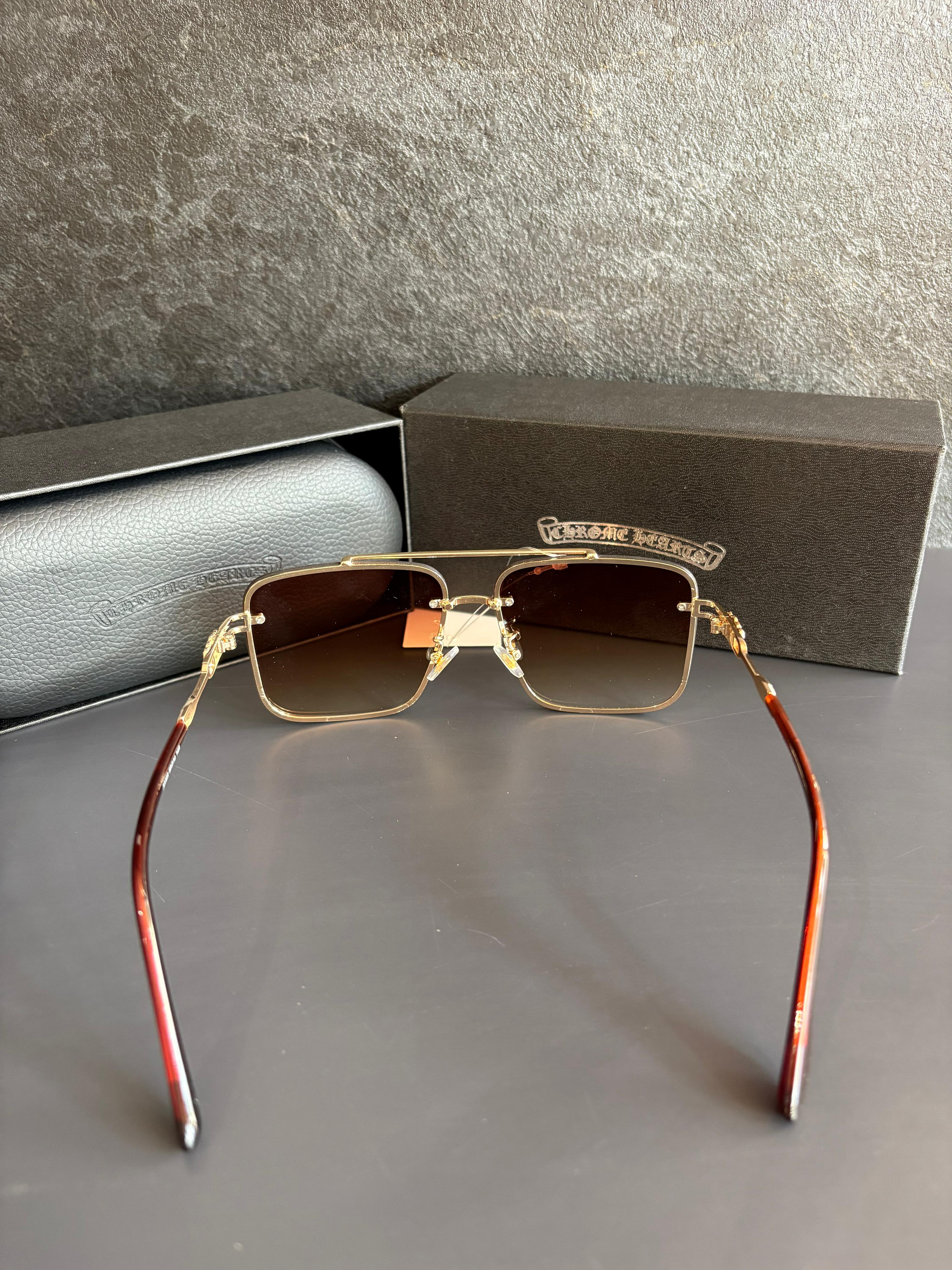 Add bold sophistication to your look with these authentic Chrome Hearts square sunglasses, crafted with a luxurious gold-tone frame and rich brown gradient lenses. Known for their exclusive craftsmanship and edgy luxury, Chrome Hearts eyewear stands out with intricate detailing and premium materials.