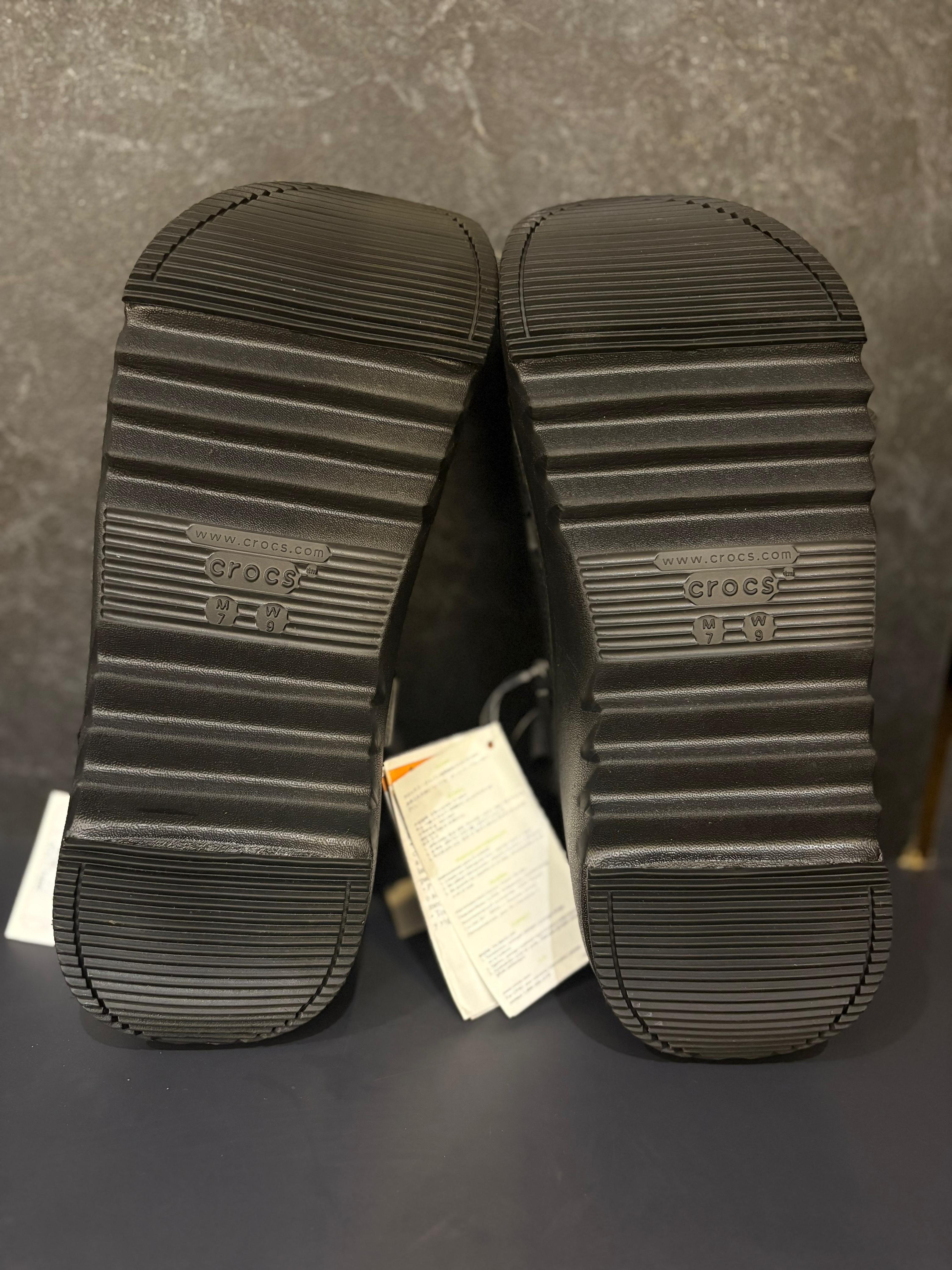 Make a bold statement with the Black Platform Crocs with Rugged Sole, the perfect blend of comfort and street-inspired fashion. Featuring the iconic Croslite™ foam cushioning with a chunky platform midsole, these clogs offer lightweight support and an elevated look. The rugged outsole ensures enhanced traction and durability, making them versatile enough for city streets, casual outings, or festival style. Designed for those who love to stand out, these Crocs deliver comfort, height, and edgy street style in one pair.