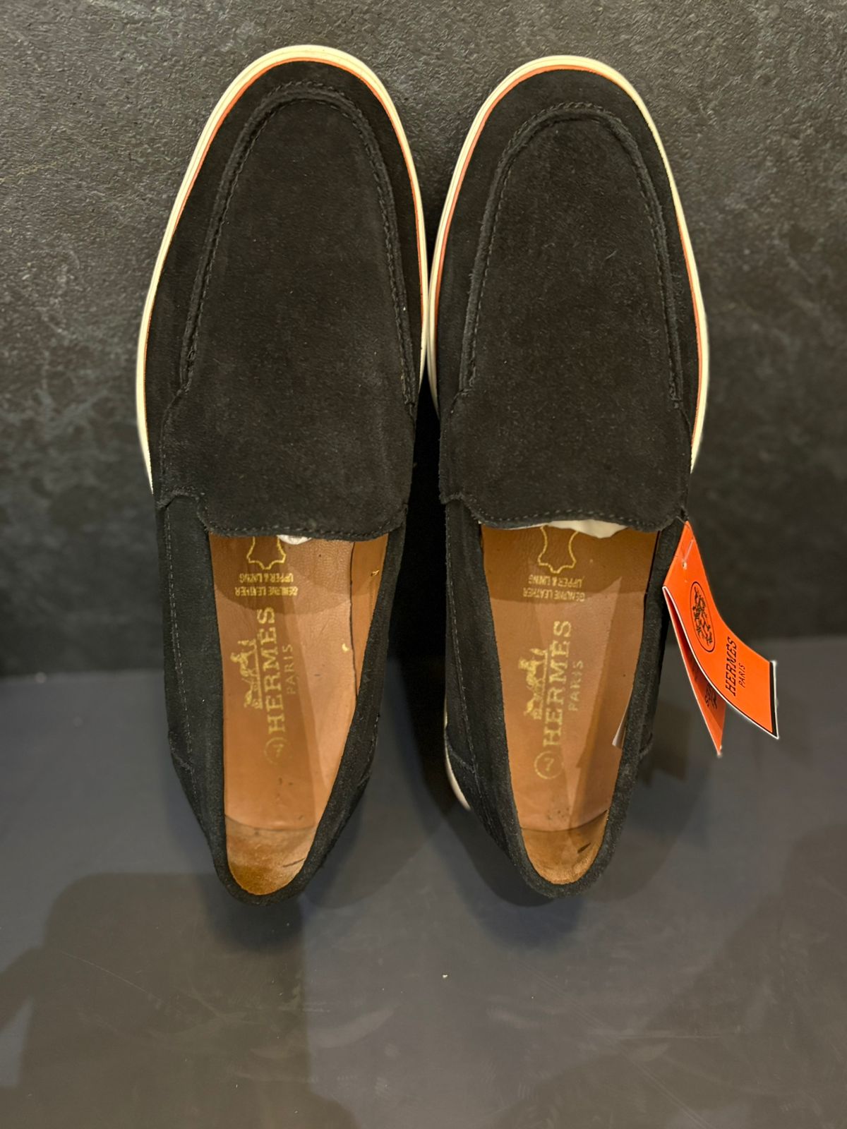 Hermes Black Suede Slip-On Shoes – Luxury Designer Footwear