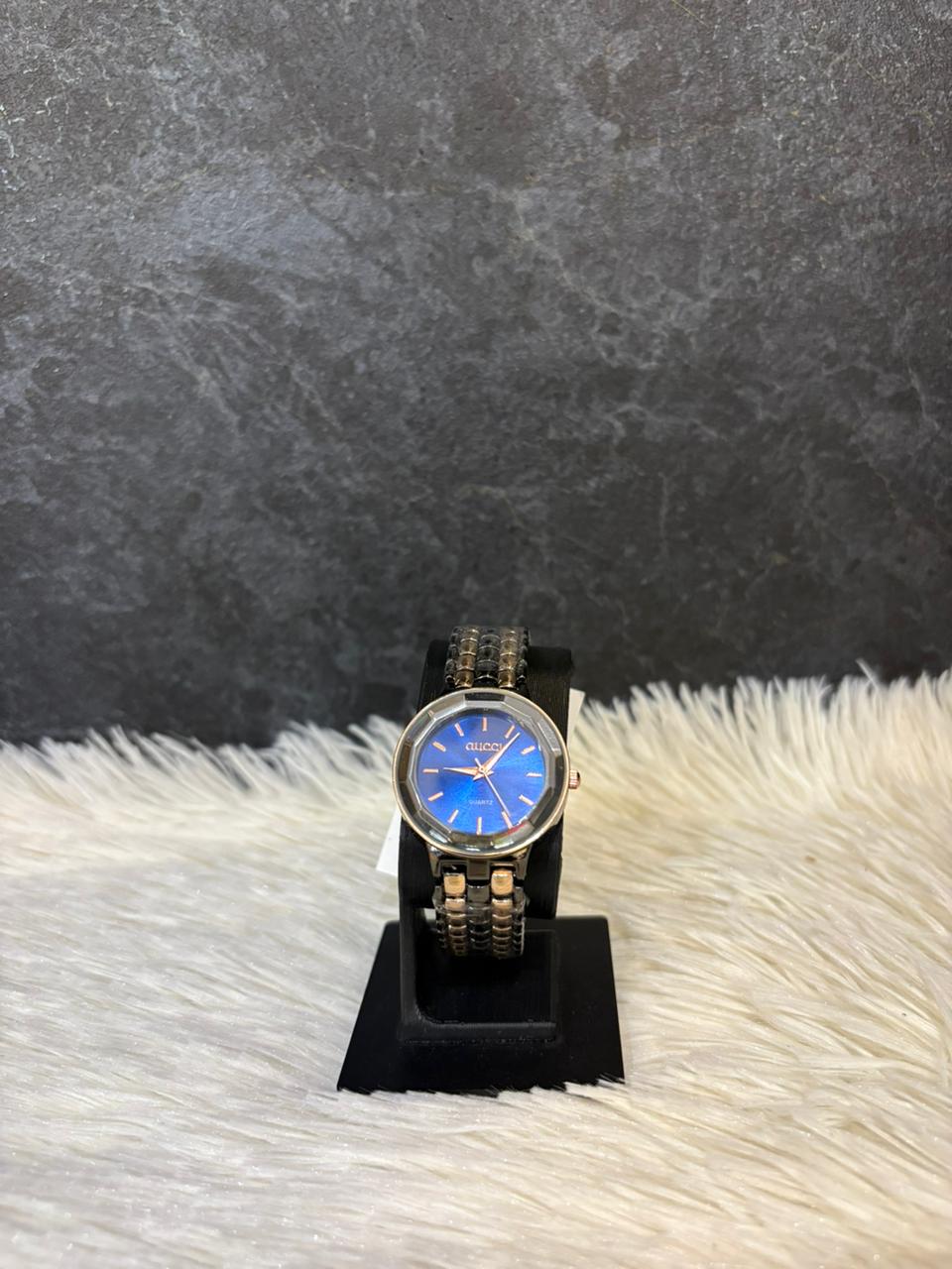Discover the timeless elegance of the Gucci Quartz Watch. Featuring a stunning blue dial, rose gold-tone accents, and a durable two-tone black and gold metal bracelet, this luxurious timepiece adds sophistication to any look. Perfect for both formal and casual occasions, the Gucci quartz watch combines precision and style, making it a must-have accessory for watch enthusiasts and fashion lovers alike. Elevate your style with this high-quality, elegant Gucci watch today.