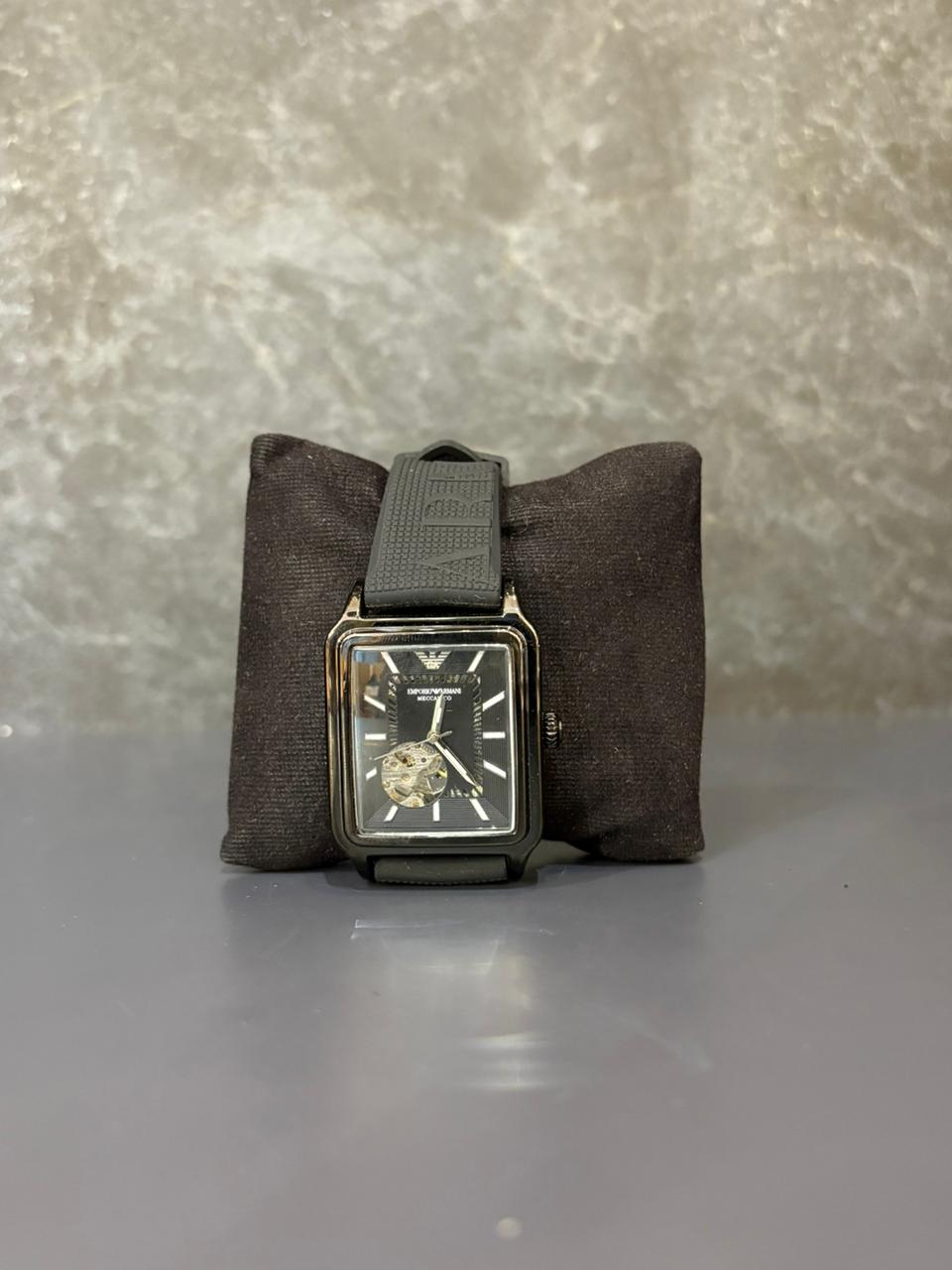 Black Emporio Armani Skeleton Watch on Rubber Strap