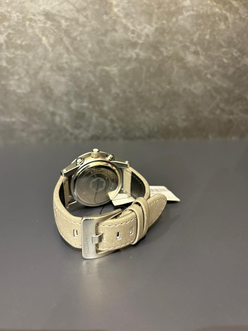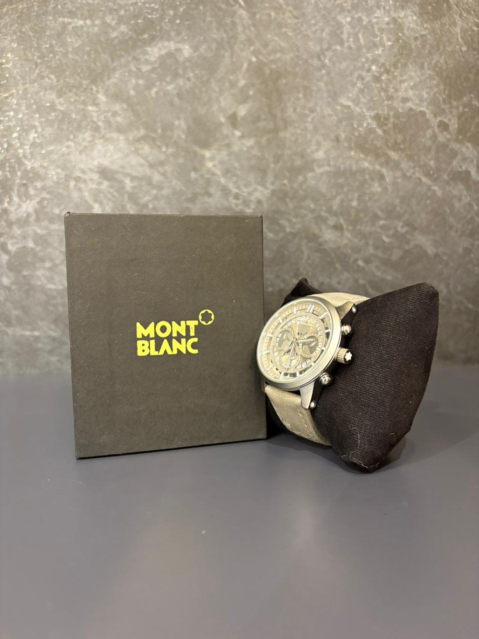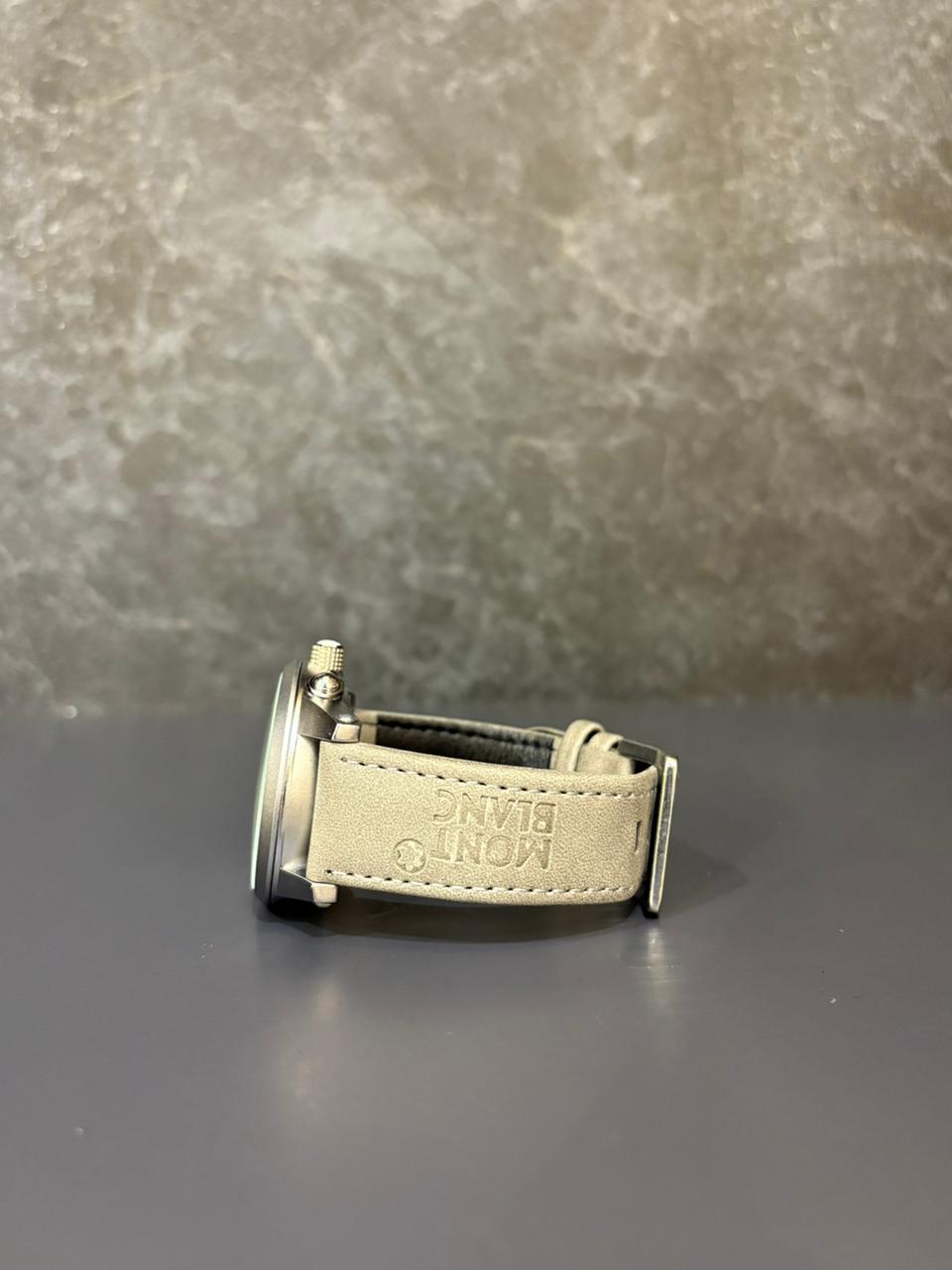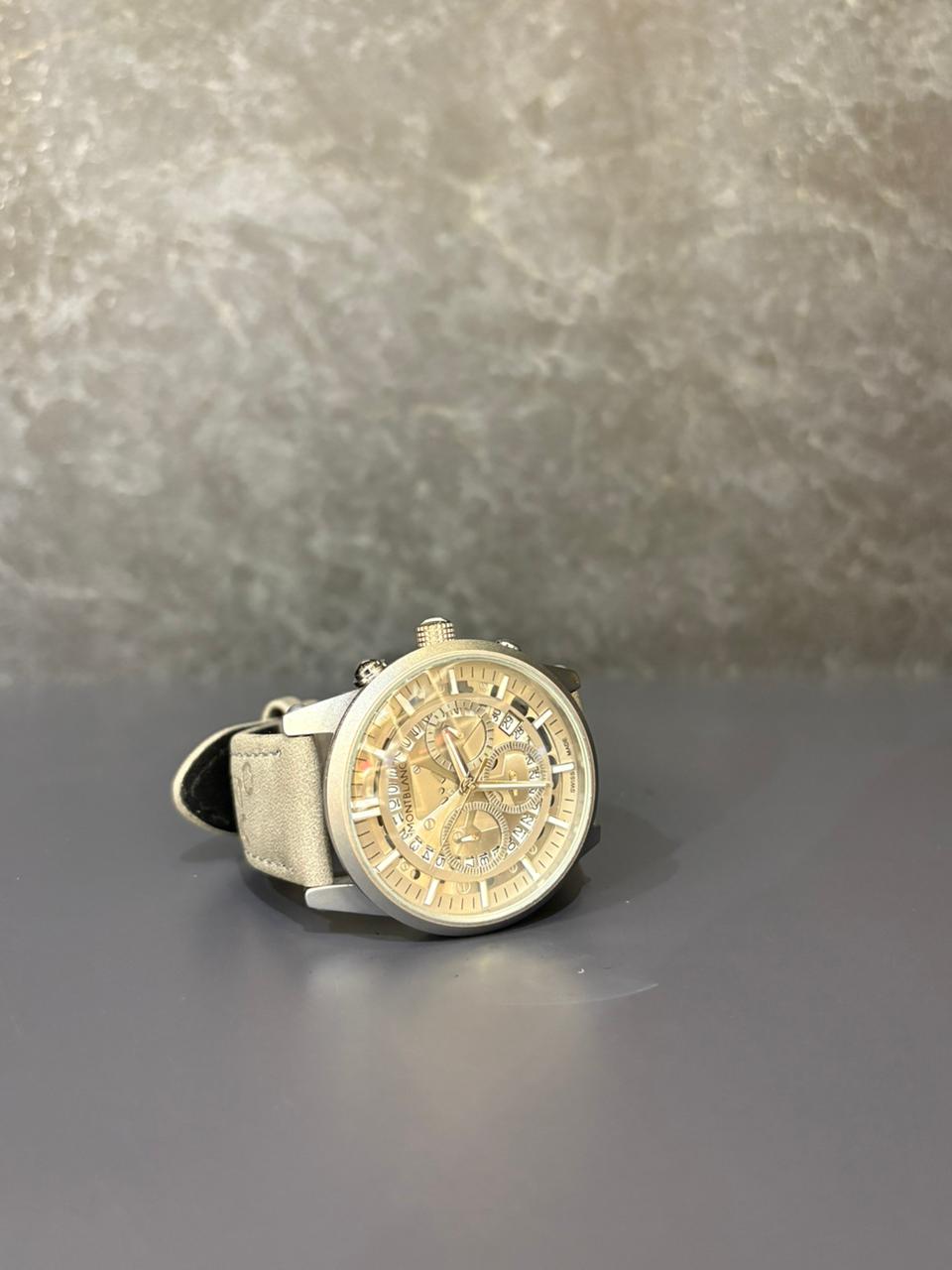Montblanc Chronograph Skeleton Dial Watch with Grey Leather Strap – Precision Craftsmanship Meets Modern Luxury